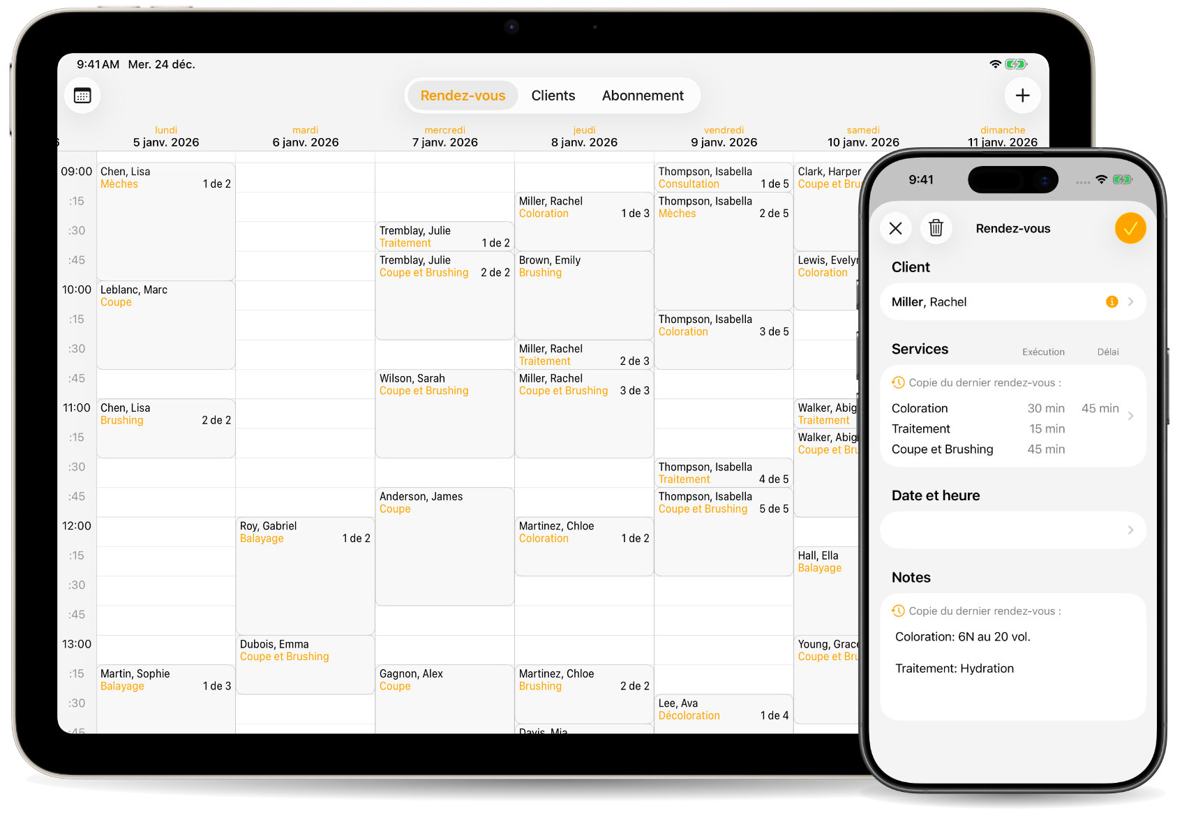 Elle offre une gestion simple et élégante des rendez-vous et des dossiers clients.